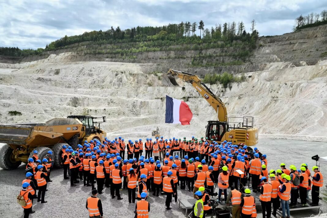 A l’issue d’un conseil des ministres décentralisé à Montluçon (Allier), mercredi 22 avril, Emmanuel Macron s’est rendu à Echassières au sud du département inaugurer une mine de lithium de l’entreprise Imerys, projet lancé en 2022 par le groupe international. Ce site permettra, à partir de 2030, de produire 34 000 tonnes par an d’hydroxyde de lithium correspondant à l’équipement de batteries pour 700 000 voitures électriques.
