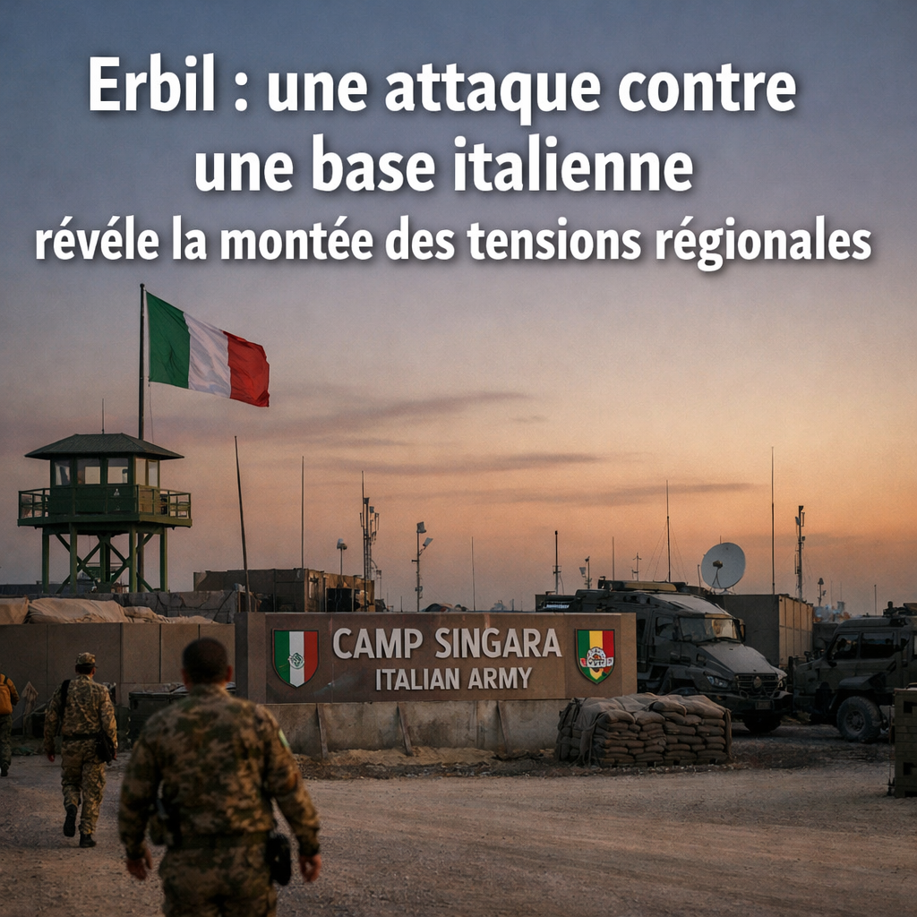 Dans la nuit du 11 au 12 mars 2026, une base militaire italienne située à Erbil, dans la région autonome du Kurdistan irakien, a été la cible d’une attaque qui illustre la montée des tensions au Moyen-Orient. Le projectile — dont la nature exacte reste encore discutée entre missile ou drone explosif — s’est abattu à proximité des installations utilisées par les forces italiennes engagées dans la coalition internationale contre l’organisation État islamique.
