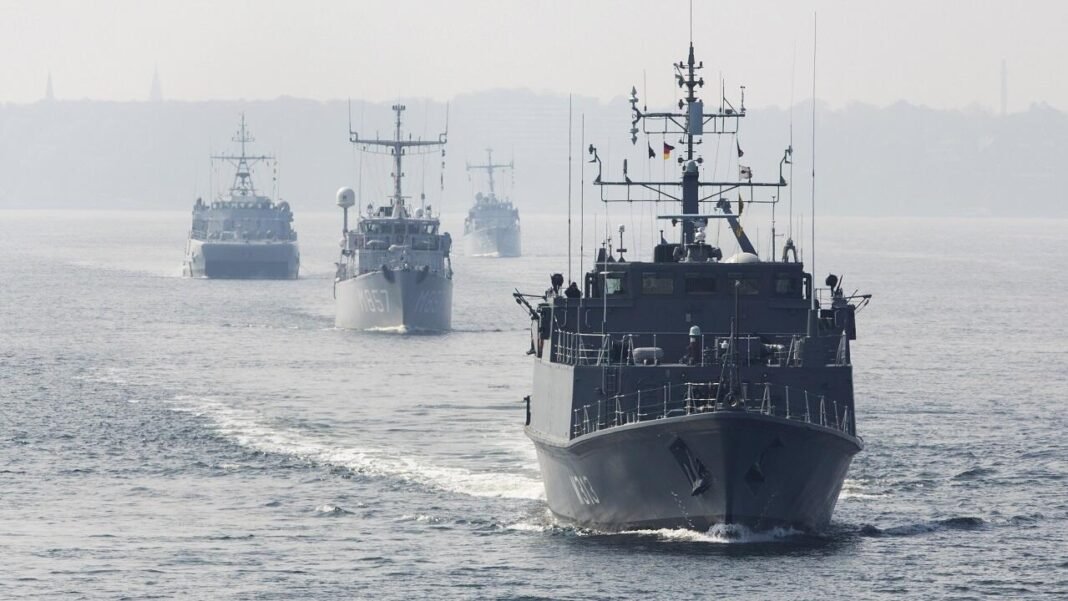 Le déplacement vers la Méditerranée d’une partie de la marine allemande vise à gagner du temps, alors que ces navires, stationnés en mer du Nord, ont besoin de plusieurs jours ou semaines pour contourner la France, le Portugal et l’Espagne. La marine allemande – qui trouve encore à l’occasion des mines de la Seconde Guerre mondiale dans ses fonds marins – dispose d’une compétence historique en matière de déminage en mer.