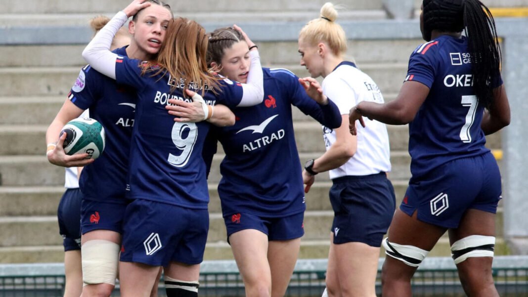 Revenues à 15 contre 15, les Françaises en ont profité pour reprendre le large au score grâce au pied de l’arrière Morgane Bourgeois, à cinq sur cinq face aux perches, et au troisième essai bleu libérateur de la centre Émilie Boulard.